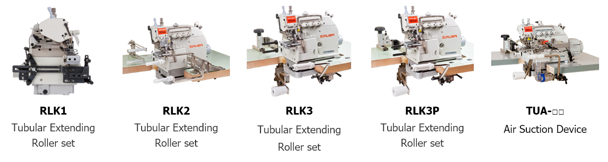 Pneumatic tape guide set holds the neckband’s right and left side. With tubular extending roller set, the neckband tape can move forward stably so that operators can focus on fabric control, which improves the efficiency and reduces the difficulty of sewing operation.