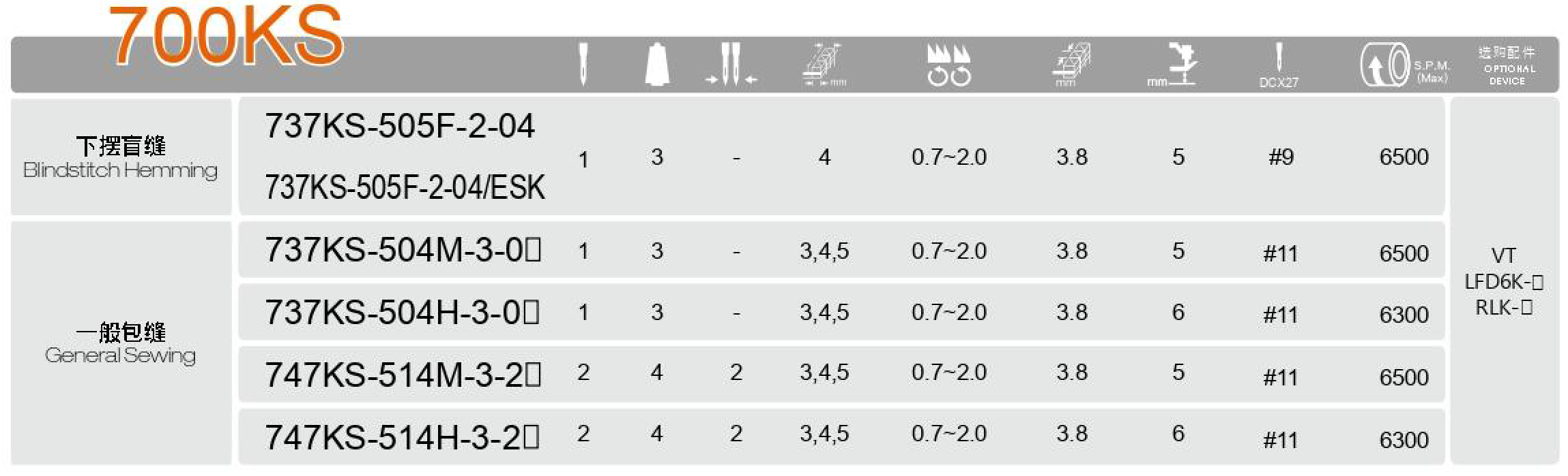Succeeding 700K Series’ features, we develop cylinder bed mechanism to extend to 700KS Series. Moreover, with brand new independent-drive top feed mechanism, it extends to 700KST Series.